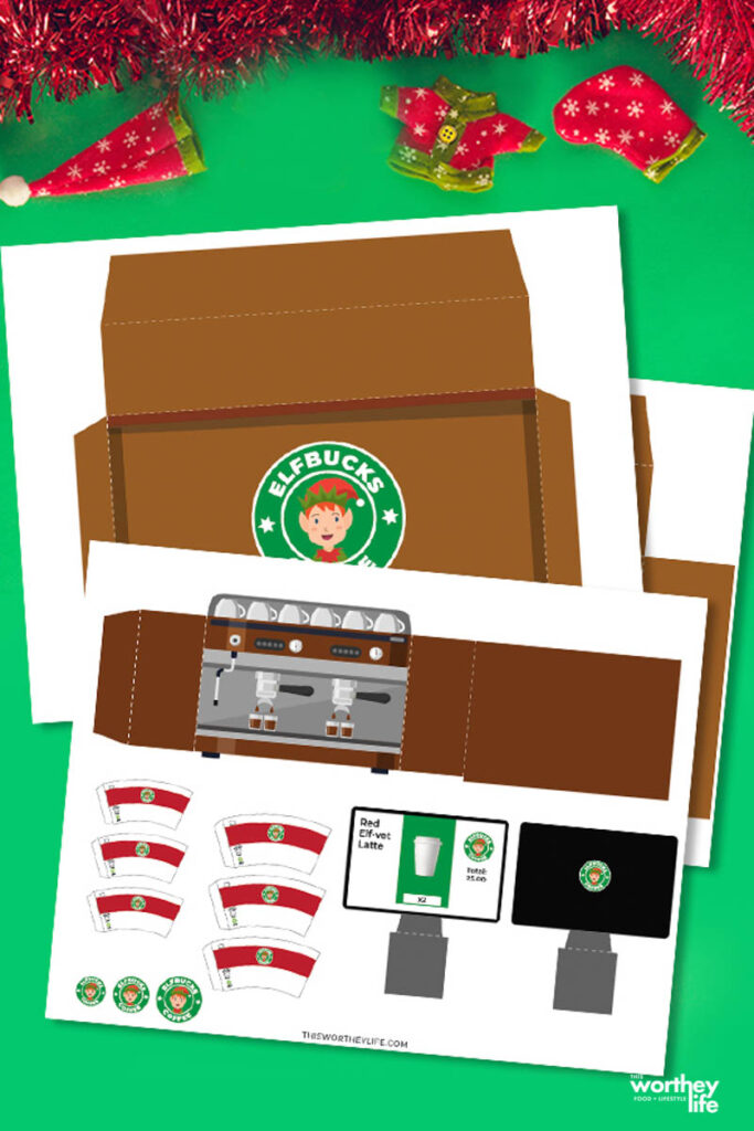 Everyone loves Starbucks, even the elf! Use this fun Elf on the Shelf Elfbucks Free Printable Idea to create the cutest little coffee bar ever.